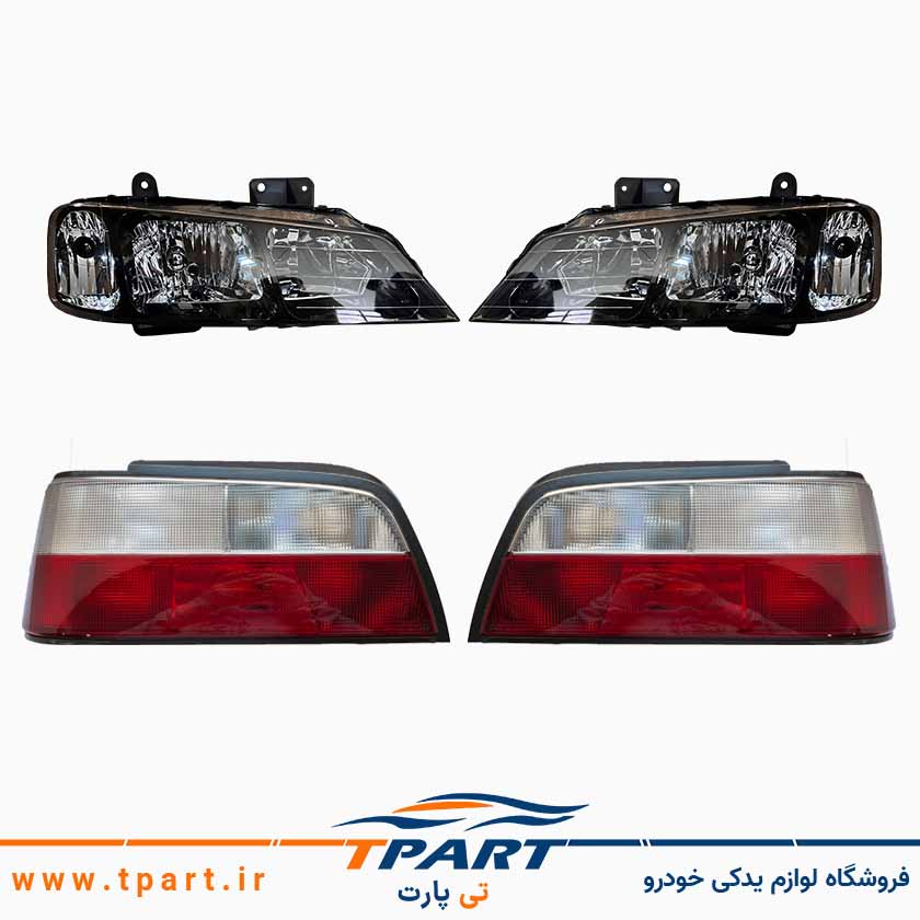 خرید پک کامل چراغ پژو پارس (۴ عددی) شامل چراغ جلو مدرن دودی و چراغ عقب برفی جمعساز؛ ست کامل جلو و عقب با نصب فابریک و قیمت ویژه.